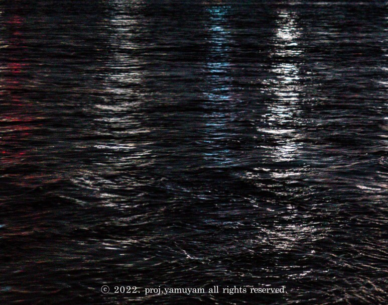 바람에 의해 생긴 잔잔한 물결이 강 건너 서울 도심의 전깃불들이 강물에 반사되며 윤슬로 나타나며 한강이라는 수공간에 독특한 질감을 정보로서 제공하고 있다.